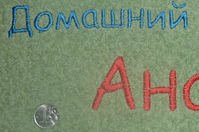 Размер машинной вышивки на полотенце логотипа Домашний Санаторий Анапа 300х90 мм. Выполнен на полотенце, без фрезилиновой подложкой. Количество стежков - 6800. Время вышивки ~ 19 минуты.